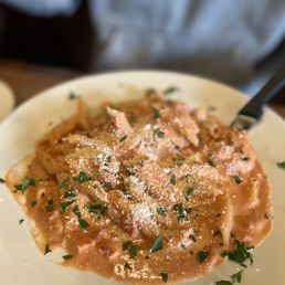 I would give this restaurant a five star because the food is delicious. I think that their lasagna that I always order is the best ever and this time I ordered the eggplant parmesan which was also delicious. The waitress is very friendly and the bus girl came back like every 10 minutes to make sure that we didn't need anything. The only reason I took away a star is because I am all about principle and what they do about the bill is not right. When the waitress brought the bill, I saw that there was a paper attached to the holder mentioning a 3.8% service charge for paying with a credit card and also a 4% operational fee which I knew nothing about. I showed my phone to the waitress with the law as of February 2024 explaining having to,,by law, mention any of these charges to the patron before they order, and not after, and also including these charges in the price of the item itself on the menu. A lot of restaurants do not want to do this because it cost too much to change the menu prices. She said that it is not her fault and to come back the next day to speak to the manager, although I think they were closed today, Monday, anyway. She said that they have a sign up front where you order pizza although that does not help people who are seated in the dining room. We would never see such a sign although I did not go up there to check it. FYI , they charge you $15 if you bring your own bottle of wine, even if you bring your own opener and own glasses.